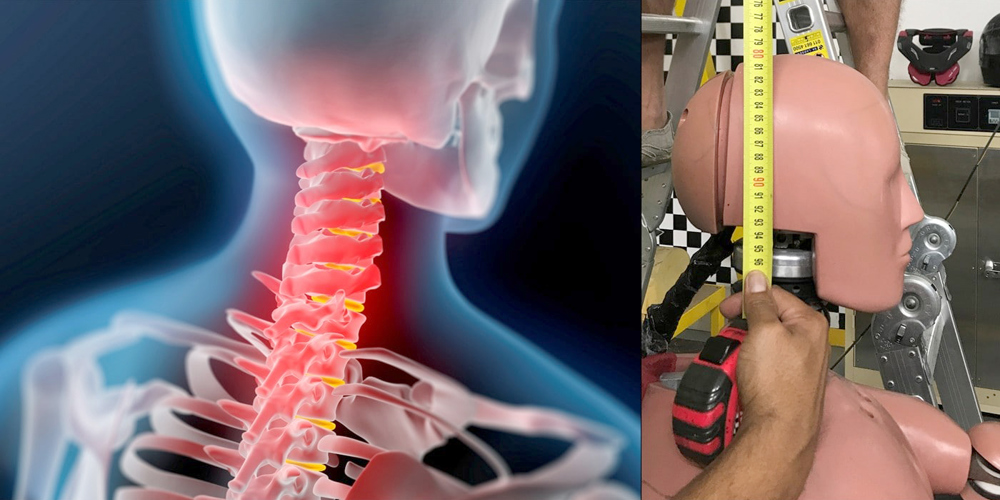 Post-incident medical records indicated a compression flexion Grade 5 (CF Grade V) fracture of C7. A literature review revealed that these injuries are typically classified with compression as the primary loading modality with secondary flexion due to instability of the affected segment. These injuries are associated with high impact energy transfer and rapid onset of peak axial compressive loading to the affected cervical segment (typically within 15-20 msec), resulting in vertebral burst-type fracture with possible retropulsion of bone fragments into the spinal canal.